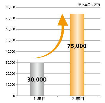 化粧品A社は、1年目は7,000万円、2年目・2.3億円、3年目・4.5億円、4年目は10億円と4年間で約14倍へと急成長を遂げています。
