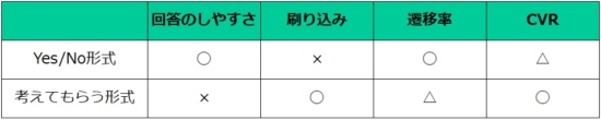 私たちも過去にはこの「回答のしやすさ」を第一に考え、Yes/No形式を多く使用した設計で実施したこともありました。