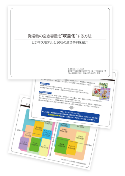 ファインドスターは、同封・同梱に軸足を置く広告代理事業を展開しています。